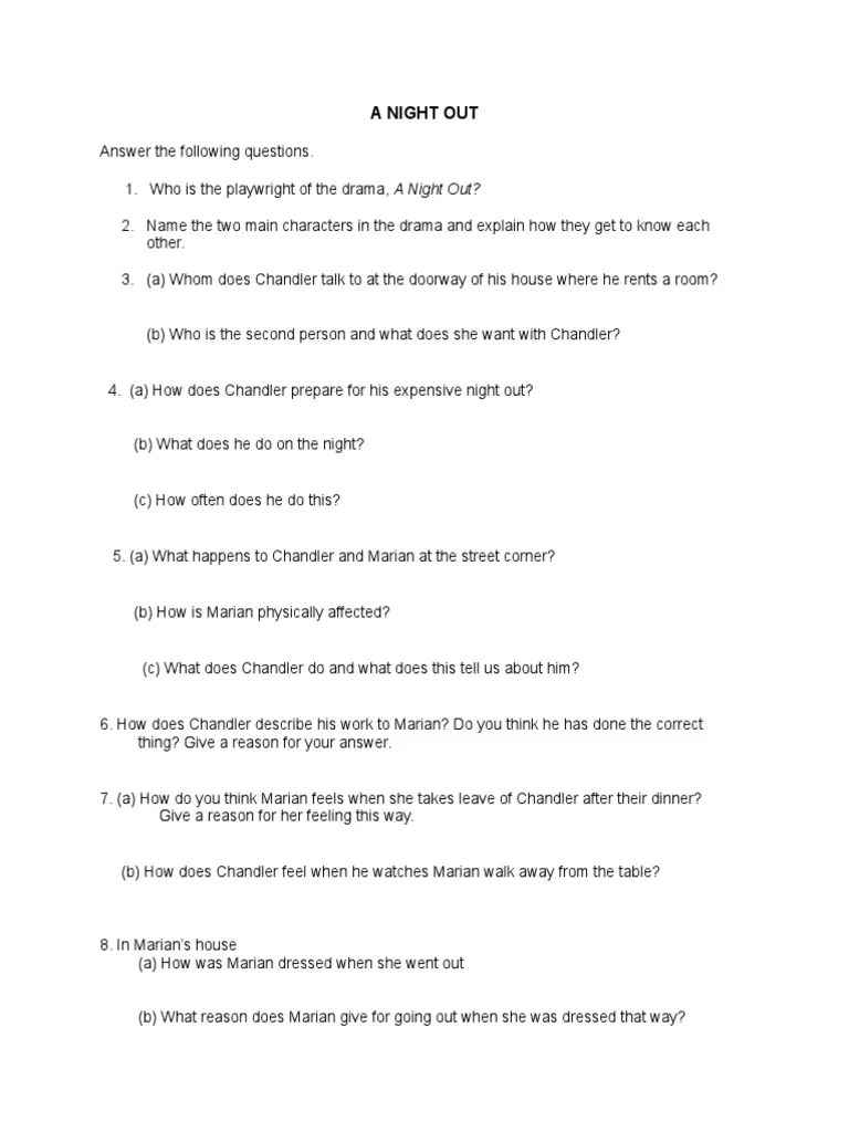 Play this game to review literature. Drama a night outside o. Who is the main character in the drama 'a night out? Synopsis, characterisation, themes, moral values & exercises.